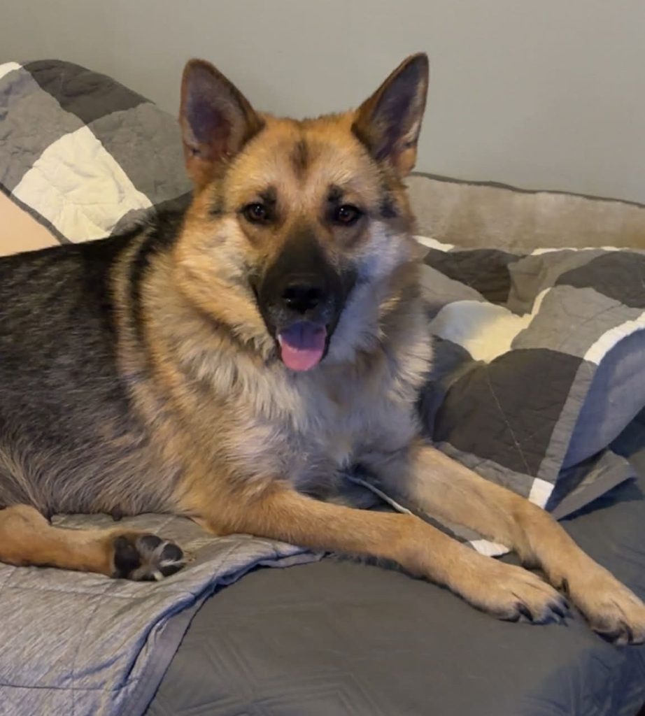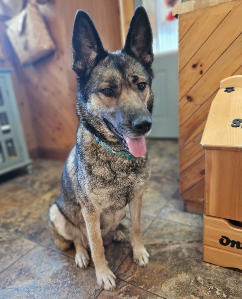 Ashes is a lovely female German Shepherd mix around 3 years old. She has the most wonderful personality: sweet, calm, playful and very loving. She’s great with all her foster’s dogs, fantastic with children, and loves to please. She knows her basic commands such as sit, lie down, and shake a paw, and is great on the leash too. She’s fantastic with her recall training – it really helps when you have treats for her! She’s also doing great with her crate training too. If you’re the kind of person who likes to get out and get some fresh air, Ashes is your girl. She loves her walks and thoroughly enjoys relaxing by your side. Ashes needs a home with at least another dog and someone that is home lots for her. Whoever adopts Ashes will feel like they’ve won the lottery! She is that special! Ashes will be vaccinated, dewormed, microchipped and spayed (rescue pays). If you would like to meet this gem of a girl, please fill out an adoption application below.