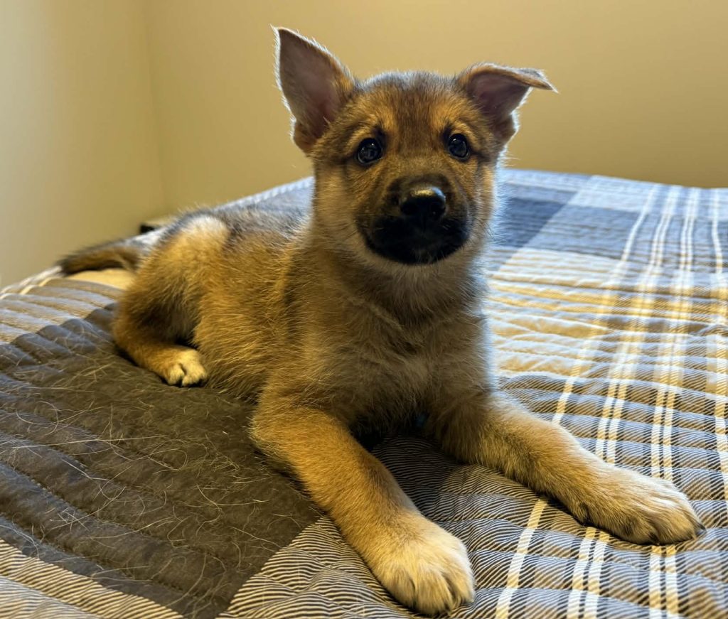Sookie is a sweet, happy puppy with the perfect blend of playful energy and cozy calm. She loves being outdoors (rolling in the snow is her favourite!), and at home she’s a little shadow, happily following her foster mom from room to room just to stay close. She is a shepherd mix about 4 months old (we think).